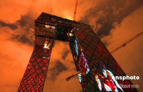 6月1日凌晨,劉翔的巨幅畫像投影在尚未竣工的央視新大樓樓體上,這是央視新大樓樓體首次投影。除田徑運動員劉翔之外,此次投影的還有籃球運動員易建聯(lián)、網(wǎng)球運動員李娜、跆拳道運動員陳中、拳擊運動員鄒市明等,眾多體育明星“點亮”北京夜空,以體育精神鼓勵中國加油。 中新社發(fā) 楊可佳 攝