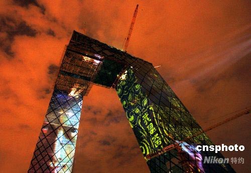 圖:巨型投影扮靚央視新址 體育精神鼓舞中國加油 (2)