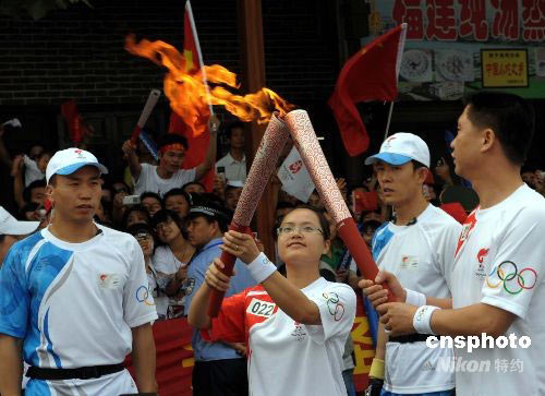 圖:湖南火炬手傳遞"祥云"火炬