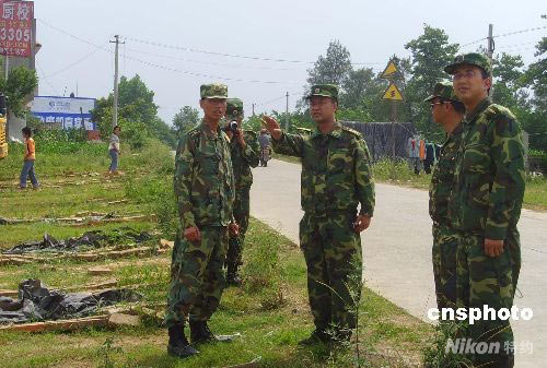 唐家山堰塞湖對綿陽市境內(nèi)的蘭成渝輸油管道大動脈形成重大威脅,6月4日,成都軍區(qū)一舟橋部隊的600余名官兵已迅速抵達江油市九嶺鎮(zhèn),對該輸油管道進行搶險保通任務(wù)。中新社發(fā) 霍潺 攝