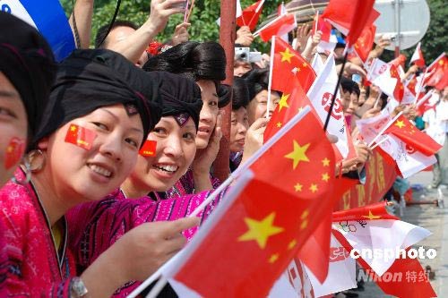 圖:廣西桂林少數(shù)民族群眾喜迎奧運圣火