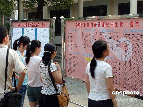 湖北宜昌市各大高考考場布置妥當,考生和家長紛紛到考場“踩點”。中新社發(fā) 劉君鳳 攝