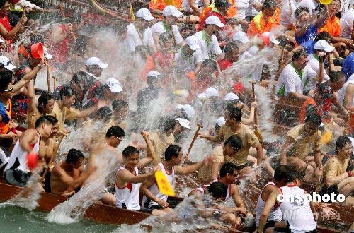 國際龍舟錦標賽慶祝端午佳節(jié) 眾人打水仗