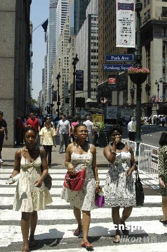 6月10日,紐約當(dāng)?shù)貧鉁剡_(dá)到華氏97度,較往年6月日均最高氣溫高出十幾度。熱浪襲人,紐約當(dāng)?shù)鼐用窈陀慰图娂娗鍥鲅b扮,消磨酷暑。中新社發(fā) 魏晞 攝