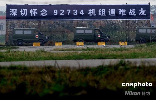 陸航團官兵在鳳凰山機場內(nèi)懸掛“深切懷念92734機組遇難戰(zhàn)友”大型黑底白字條幅,追憶戰(zhàn)友。中新社發(fā) 劉新 攝
