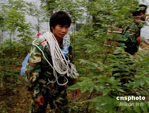增援官兵趕赴失事直升機警民遺體營地。中新社發(fā) 賈國榮 攝