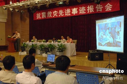 圖為僑辦系統(tǒng)抗震救災(zāi)先進事跡報告會的現(xiàn)場。中新社發(fā) 鄒憲 攝