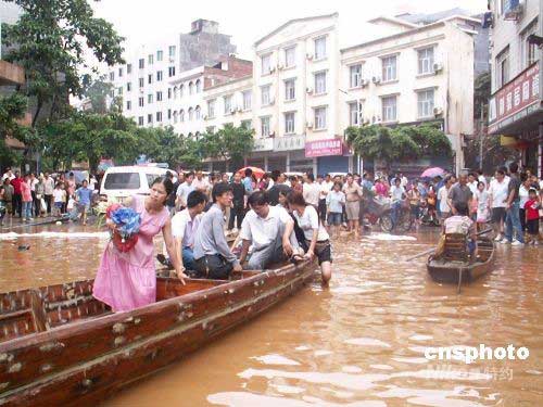 廣西桂北地區(qū)連日普降特大暴雨,地處漓江、荔江和茶江“三江”匯合的廣西平樂縣六月十三日發(fā)生了歷史上最大的洪澇災(zāi)害?h城主要街道水深近二米,交通中斷。據(jù)初步統(tǒng)計(jì),平樂縣受災(zāi)人口二十五點(diǎn)六三四萬人,被圍困民眾五萬多人,目前共救助轉(zhuǎn)移民眾四點(diǎn)四萬多人。圖為六月十三日渡船轉(zhuǎn)移被困群眾。中新社發(fā) 陶彩忠 攝