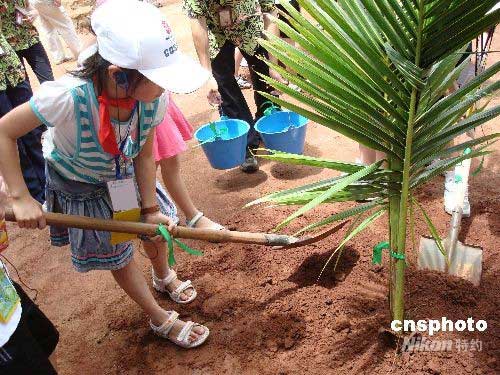 圖為孩子們在園中種植愛心樹。中新社發(fā) 陳少婷 攝