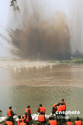 圖:濟南舉行大型黃河防汛搶險演練(2)