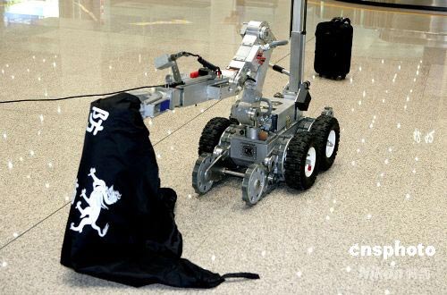 圖:北京海關(guān)奧運(yùn)防爆演習(xí)利用機(jī)器人排險(xiǎn)