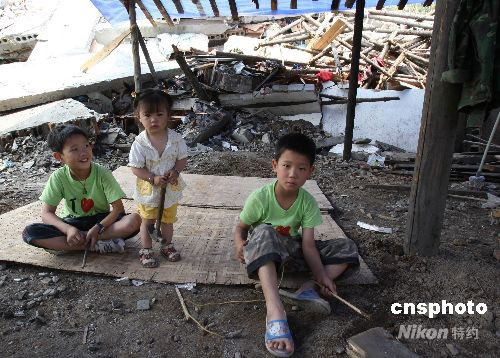圖:地震幸存雙胞胎難舍震毀家園