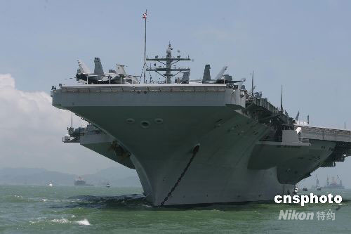 圖:美國(guó)核動(dòng)力航空母艦“里根號(hào)”訪(fǎng)港