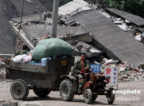 四川汶川大地震破壞最嚴(yán)重的震中地區(qū)映秀鎮(zhèn),六月中旬有許多村民開(kāi)拖拉機(jī)返鄉(xiāng),準(zhǔn)備重建家園。中新社發(fā) 賈國(guó)榮 攝