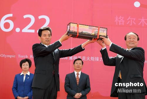 圖:格爾木市委向北京奧組委贈送昆侖玉如意