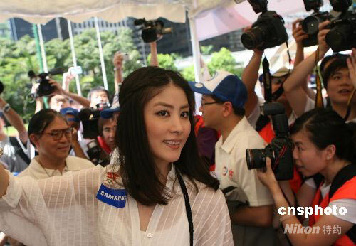 近期剛剛公布婚訊的著名歌星陳慧琳在香港出席二零零八奧運歡樂跑活動上,備受媒體關(guān)注。 中新社發(fā) 武仲林 攝