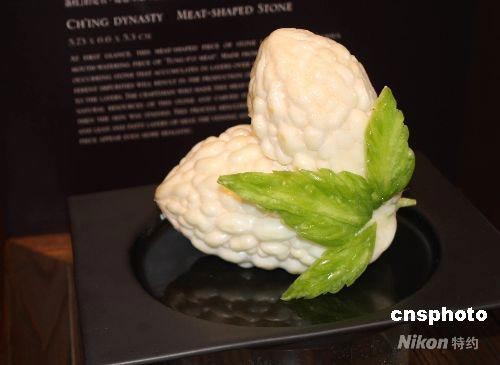 “白玉錦荔枝”原擺放在北京故宮乾清宮東暖閣,原件是仿雕苦瓜。主廚選用臺灣精致農(nóng)業(yè)的代表產(chǎn)品之一的“蘋果苦瓜”做食材,這種苦瓜外表白胖圓潤,其造型與故宮文物原件十分相似,拌以沙拉醬,味甘甜。中新社發(fā) 耿軍 攝