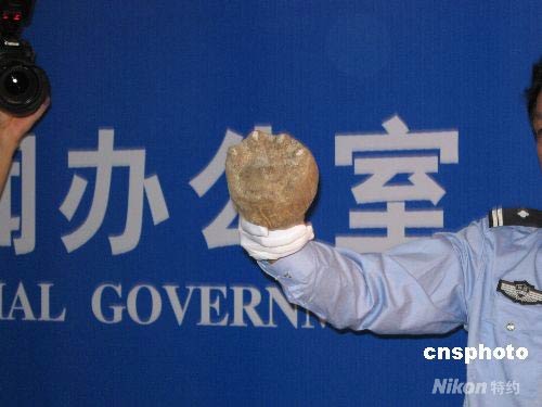 圖為該省警方在發(fā)布會(huì)上展示在周正龍家查出的周正龍用于拍攝野生華南虎足跡照片所使用的木制模具。中新社發(fā) 趙景榮 攝