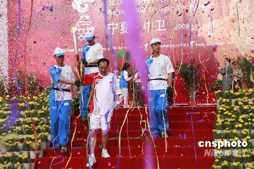 中衛(wèi)市是奧運(yùn)火炬在寧夏傳遞第一站,火炬手共有205名,第一棒火炬手是寧夏文聯(lián)名譽(yù)主席、知名作家張賢亮。張賢亮開辦了鎮(zhèn)北堡西部影視城并成功經(jīng)營(yíng),號(hào)稱中國(guó)作家“首富”。 中新社發(fā) 蘆河 攝