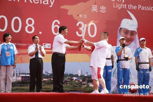 6月30日,奧運(yùn)火炬在中國回族之鄉(xiāng)寧夏吳忠傳遞。吳忠是馳名中外的“中國回族之鄉(xiāng)”,位于黃河上游,地處寧夏平原腹地。全市總?cè)丝?30.8萬人,其中回族65.6萬人,占總?cè)丝诘?0.2%,是我國主要的回族聚居區(qū)之一,也是全國地級(jí)市中回族人口比例最高的市。 中新社發(fā) 蘆河 攝