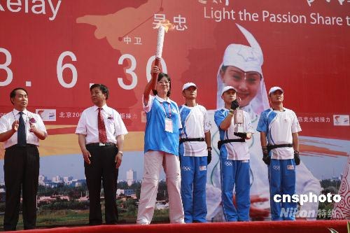 6月30日,奧運火炬在寧夏吳忠傳遞。中新社發(fā) 蘆河 攝