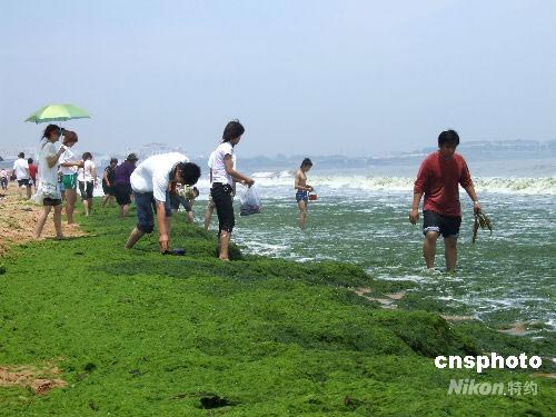 奧帆賽舉辦地青島動(dòng)員各界清理近海滸苔(3)