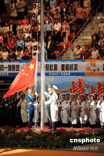 駐港部隊(duì)儀仗隊(duì)在慶回歸匯演開幕式上升旗
