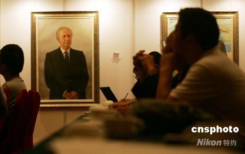 7月2日,奧博會組委會指定中國嘉德國際拍賣有限公司為獨家拍賣合作機構,負責在奧博會期間組織舉辦“北京2008年奧林匹克博覽會·中國嘉德專場拍賣會”,拍賣奧運及體育題材的藝術及收藏品。拍賣會拍品將包括來自海內(nèi)外藏家的體育題材的藝術品、奧運郵品、奧運紀念品和收藏品三大門類近300件精品。這次拍賣的重頭之一是一批共計92幅油畫精品,是以靳尚誼為代表的寫實畫派所創(chuàng)作的著名奧運人物肖像,其中包括《薩馬蘭奇》肖像、《羅格》肖像、《女排團體》畫像以及1984年至2000年五屆奧運會全體中國奧運冠軍和著名教練員的肖像。除此以外,多屆奧運會傳遞火炬,簽名球、簽名衫和與奧運相關的奧運紀念郵冊、紀念幣、珍貴照片、書籍等眾多精品也將亮相上拍。圖為油畫《薩馬蘭奇》肖像在發(fā)布會上展出。 中新社發(fā) 楊可佳 攝
