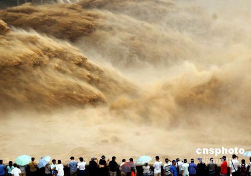 7月4日從小浪底建管局獲悉,小浪底水庫自7月3日6時開始按1500立方米/秒控泄,這標(biāo)志著小浪底水庫2008年汛前調(diào)水調(diào)沙中所承擔(dān)的任務(wù)已經(jīng)完成。此次調(diào)水調(diào)沙,小浪底水庫下泄水量約40.3億立方米,水庫補水約28億立方米。小浪底水庫水位由調(diào)水調(diào)沙開始時245.24米回落至調(diào)水調(diào)沙結(jié)束時222.76米。圖為6月23日、29日小浪底水庫調(diào)水調(diào)沙時的情景。中新社發(fā) 平白 攝