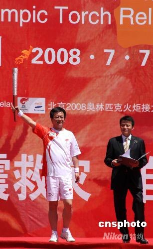 7月7日,北京奧運(yùn)火炬圓滿結(jié)束在蘭州的傳遞,中央電視臺節(jié)目主持人朱軍在自己的家鄉(xiāng)擔(dān)任最后一棒火炬手。 中新社發(fā) 周兆軍 攝