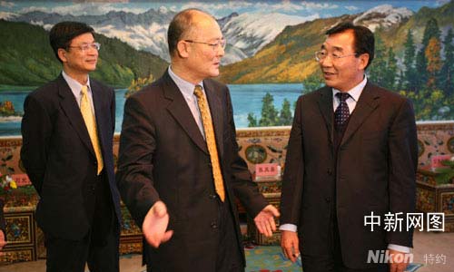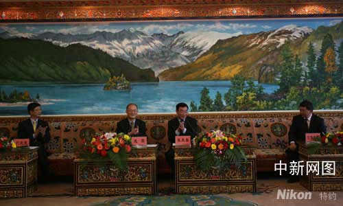 圖為西藏自治區(qū)黨委書(shū)記張慶黎、自治區(qū)黨委常委、秘書(shū)長(zhǎng)公保扎西會(huì)見(jiàn)趙陽(yáng)、劉北憲一行。賈長(zhǎng)飛 攝影