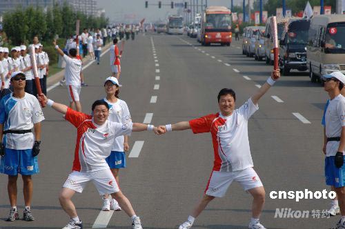 圖:呼和浩特火炬手優(yōu)美舞姿交接奧運火炬