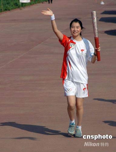 圖:香港城市大學學生詹寶傳遞奧運火炬