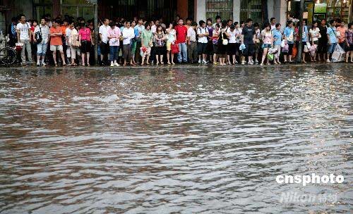 7月11日,南京遭受暴雨襲擊,市區(qū)多處道路積水,由于時(shí)值周末,又正值下上班高峰時(shí)間,給市民出行帶來不便。另悉,當(dāng)?shù)貧庀笈_當(dāng)日16時(shí)許先后發(fā)布暴雨橙色預(yù)警信號和雷電紅色預(yù)警信號,預(yù)報(bào)未來3小時(shí)內(nèi)南京市降雨量將達(dá)50毫米以上,并伴有強(qiáng)雷電。中新社發(fā) 鐘山 攝