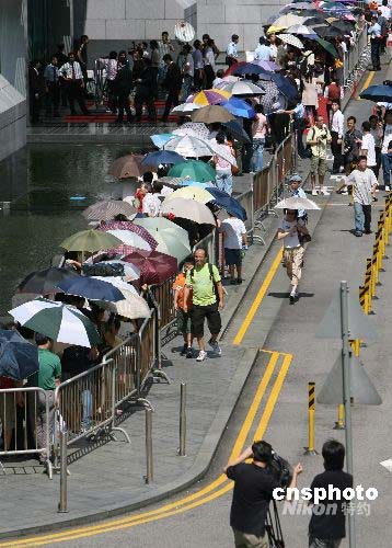 數(shù)千香港市民排隊(duì)領(lǐng)取奧運(yùn)紀(jì)念鈔票購(gòu)物憑證(2)