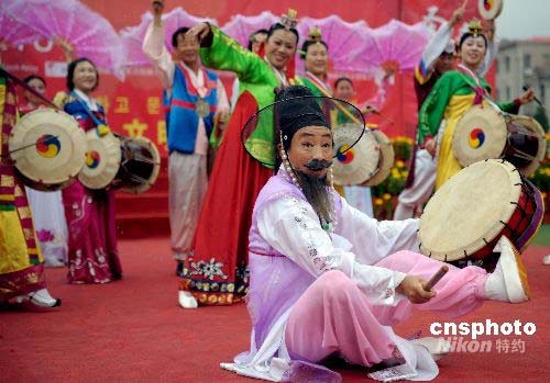 圖:延吉朝鮮族民眾載歌載舞歡慶奧運火炬?zhèn)鬟f