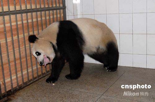 臥龍大熊貓“幗幗”在親自喂養(yǎng)雙胞胎中的老大。中新社發(fā) 羅小韻 攝