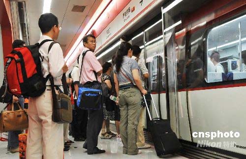 7月20日,由北京東直門公交樞紐通往首都機(jī)場(chǎng)T2、T3航站樓的機(jī)場(chǎng)快軌迎來(lái)開(kāi)通后的第二天,由于當(dāng)日啟動(dòng)奧運(yùn)單雙號(hào)限行措施,旅客人數(shù)明顯增加。據(jù)悉,乘坐機(jī)場(chǎng)快軌16分鐘即可從東直門抵達(dá)首都國(guó)際機(jī)場(chǎng)。中新社發(fā) 王宇婷 攝
