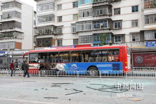 昆明市警方稱,二十一日七時(shí)許,一輛開往岷山的五十四路公交車由東向西行駛至潘家灣人民西路與西昌路交叉口公交車站臺停車時(shí)突然發(fā)生爆炸,致一人死亡,一人重傷,九人輕傷;車廂兩側(cè)玻璃全部破碎,部分座椅變形。同日上午八時(shí)許,另一輛五十四路公交車由東向西行駛至人民西路與昌源中路交叉口時(shí)發(fā)生爆炸,導(dǎo)致一人現(xiàn)場死亡,四人受傷。