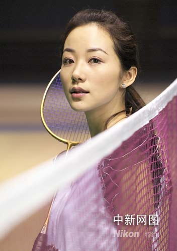圖:影視紅星韓雪奧運(yùn)羽毛球館激情揮拍