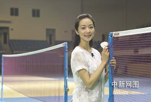 圖:影視紅星韓雪奧運羽毛球館激情揮拍