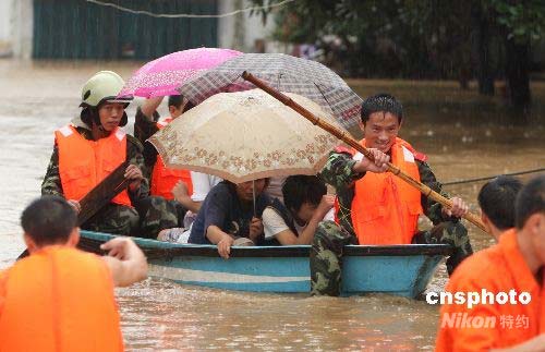 7月22日,湖北襄樊市遭遇1959年以來(lái)的最大暴雨。截至22日15時(shí)止,市區(qū)降雨量已達(dá)254毫米。襄樊氣象臺(tái)數(shù)據(jù)顯示,從22日凌晨2時(shí)開(kāi)始,整個(gè)襄樊地區(qū)普降暴雨,強(qiáng)降雨中心位于襄樊市城區(qū)。至下午15時(shí)止,襄樊城區(qū)降雨量已達(dá)254毫米,整個(gè)襄樊地區(qū)的降雨量亦普遍在80毫米以上。當(dāng)日,城區(qū)多處低洼地段出現(xiàn)內(nèi)澇,一些群眾被洪水圍困。當(dāng)?shù)匚渚、公安、消防部門(mén)迅速出動(dòng),把被洪水圍困的群眾轉(zhuǎn)移到安全地帶。目前,受災(zāi)情況市政府已開(kāi)始統(tǒng)計(jì)。中新社發(fā) 文銘 攝