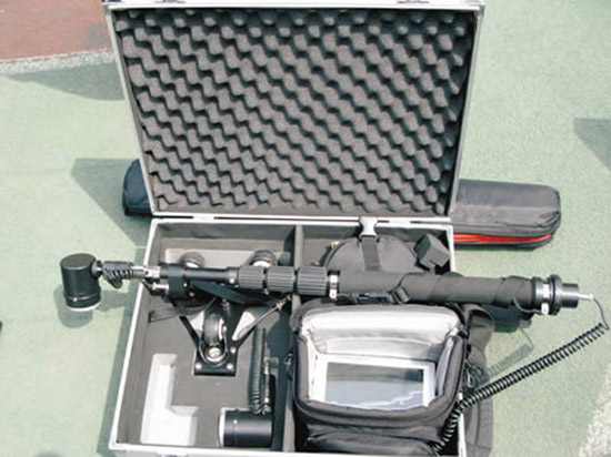 這種視頻探測(cè)器是于去年年底引進(jìn)的。它有廣角鏡頭,拍攝范圍比較廣,還可用于近距離觀察。檢查鏡探入車(chē)底時(shí)也運(yùn)動(dòng)自如,不會(huì)被損壞。探桿可以拉至所需要的長(zhǎng)度,對(duì)人工觀察不便的“犄角旮旯”進(jìn)行清晰觀察。視頻探測(cè)器表面上很不起眼:裝置設(shè)備的箱子,還不如一般的旅行包大。但它有一個(gè)能伸縮的棍狀探桿,能“看到”難以觀察的“死角地帶”,尤其在黑暗中,它還能自動(dòng)轉(zhuǎn)換為紅外攝像頭,顯示黑白圖像進(jìn)行搜索。