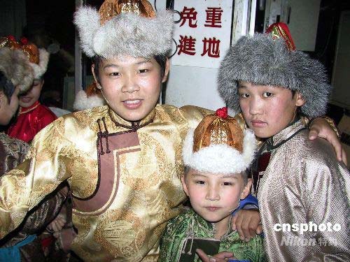 圖為演出前,孩子們后臺休息。中新社發(fā) 徐長安 攝