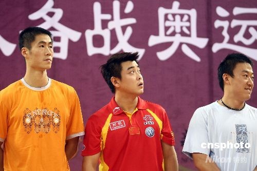 中國乒乓球隊(duì)備戰(zhàn)奧運(yùn)熱身賽男團(tuán)決賽在無錫體育中心進(jìn)行。男隊(duì)設(shè)4支隊(duì)伍進(jìn)行淘汰賽,女隊(duì)分4隊(duì)進(jìn)行單循環(huán)比賽,并設(shè)男子單打擂臺(tái)賽。最終王皓、馬琳、王勵(lì)勤組成的男一隊(duì)苦戰(zhàn)5局奪得男子團(tuán)體冠軍。中新社發(fā) 盛佳鵬 攝