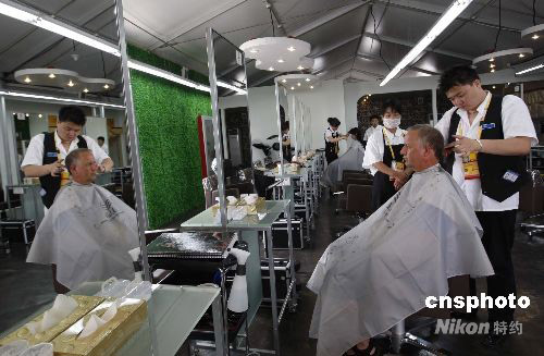 7月29日,入駐北京奧運(yùn)村的村民,在美容區(qū)理發(fā)。 中新社發(fā) 杜洋 攝