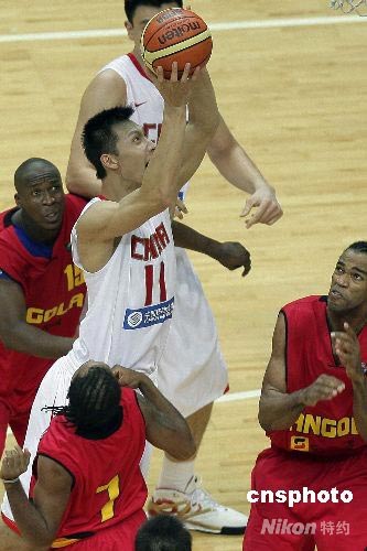 7月29日晚,國(guó)際籃聯(lián)2008鉆石杯男籃比賽中國(guó)隊(duì)與安哥拉隊(duì)的比賽在江蘇南京奧體中心體育館舉行。最終中國(guó)隊(duì)83比74戰(zhàn)勝安哥拉隊(duì),取得開門紅并報(bào)了斯坦科維奇杯輸球的一箭之仇。參加鉆石杯男籃比賽的隊(duì)伍包括阿根廷隊(duì)、澳大利亞隊(duì)、塞爾維亞隊(duì)、安哥拉隊(duì)、伊朗隊(duì)和東道主中國(guó)隊(duì)。這次比賽也是北京奧運(yùn)會(huì)前各隊(duì)的最后一次熱身機(jī)會(huì)。圖為中國(guó)隊(duì)11號(hào)隊(duì)員易建聯(lián)進(jìn)攻。 中新社發(fā) 盛佳鵬 攝
