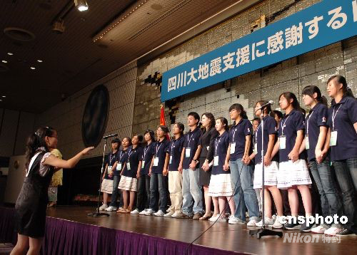 圖:四川地震災(zāi)區(qū)青少年歌聲感謝日本各界