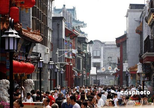 7月30日,在北京奧運(yùn)即將開(kāi)幕之際,有著近500年歷史的大柵欄商業(yè)街完成近年來(lái)最大規(guī)模的改造,重新正式開(kāi)街迎接四方來(lái)客。 中新社發(fā) 王東明 攝