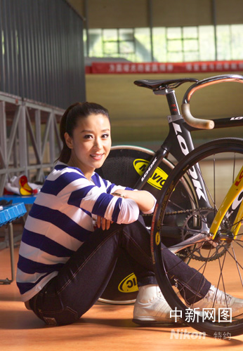 圖為影視紅星苗圃在老山自行車館拍攝的寫真。